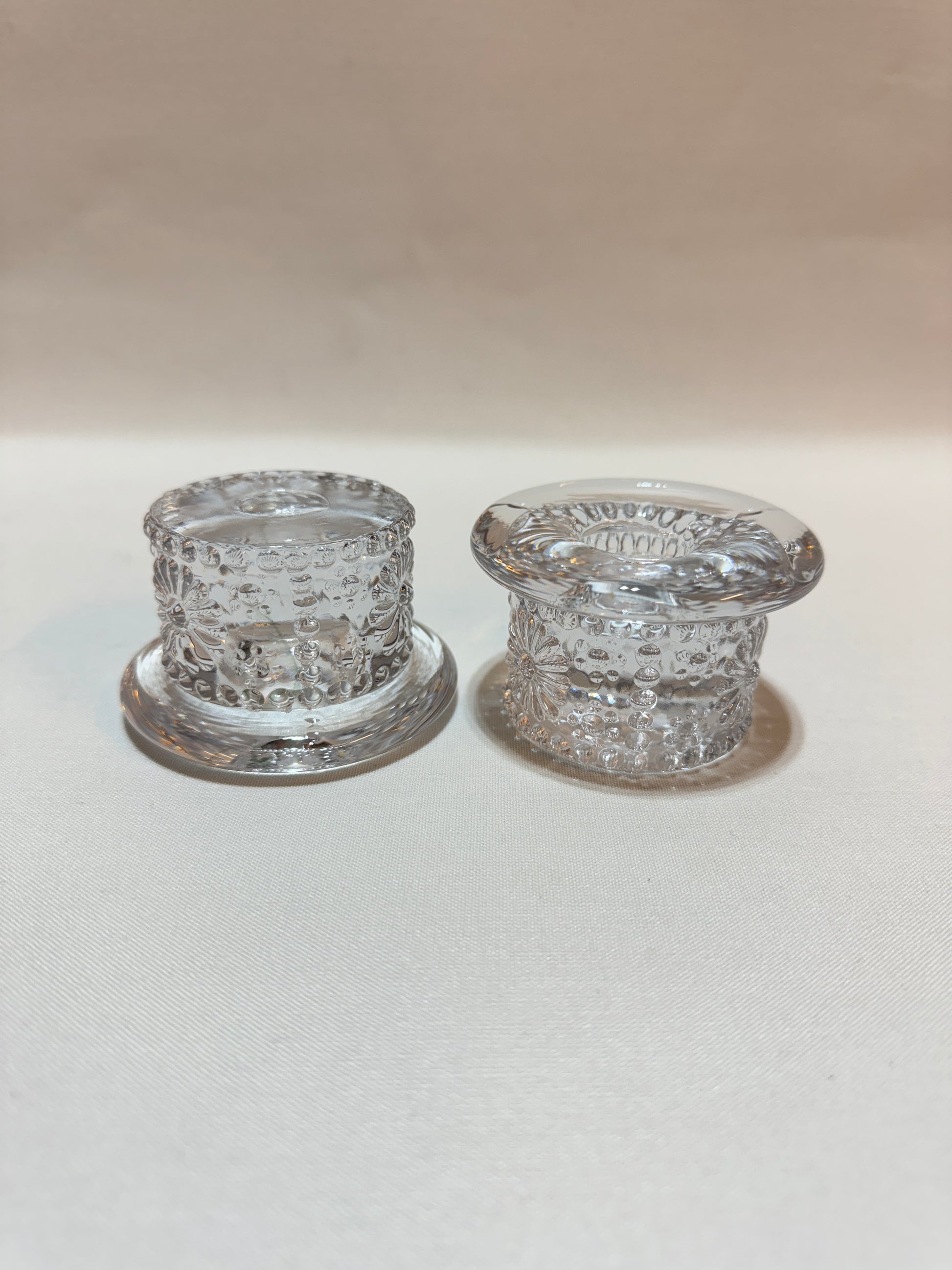 Ljusstakarna står Rolf Sinnemark för Kosta Boda bakom. Höjd ca 4,5 cm. Säljes ihop. Diameter 7,5 cm. I gott bruksskick.