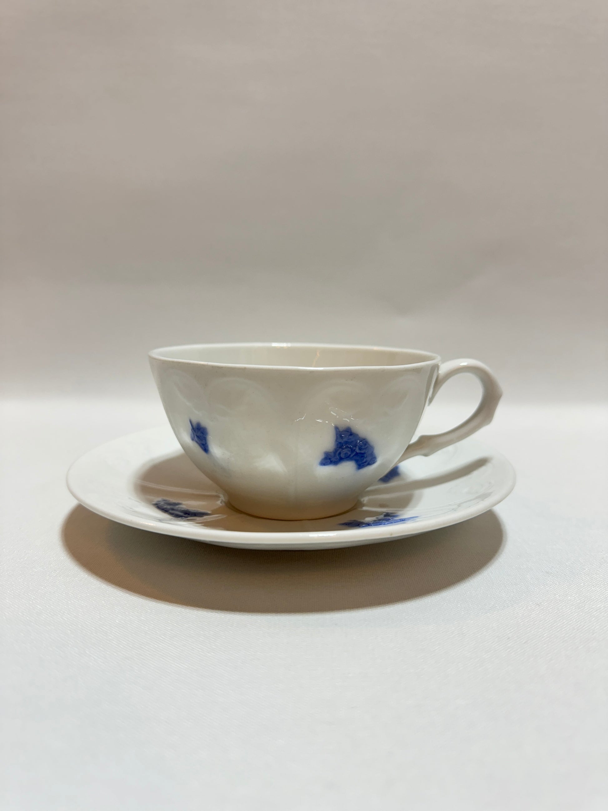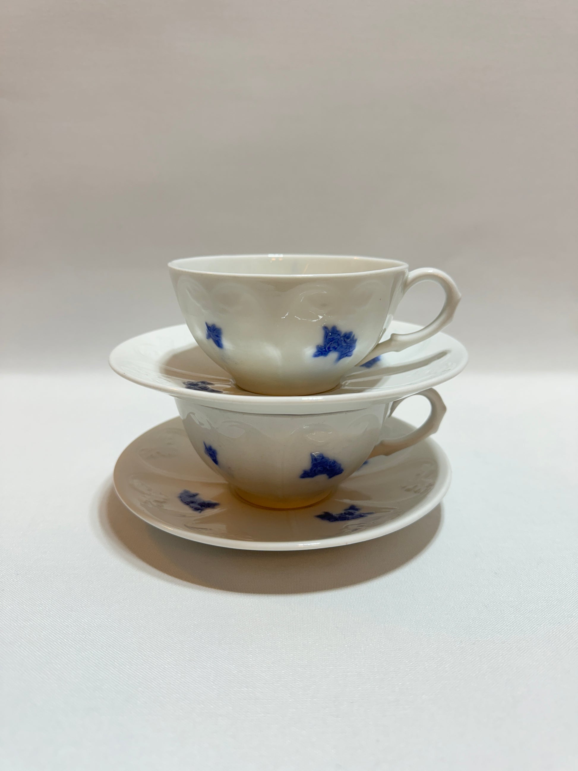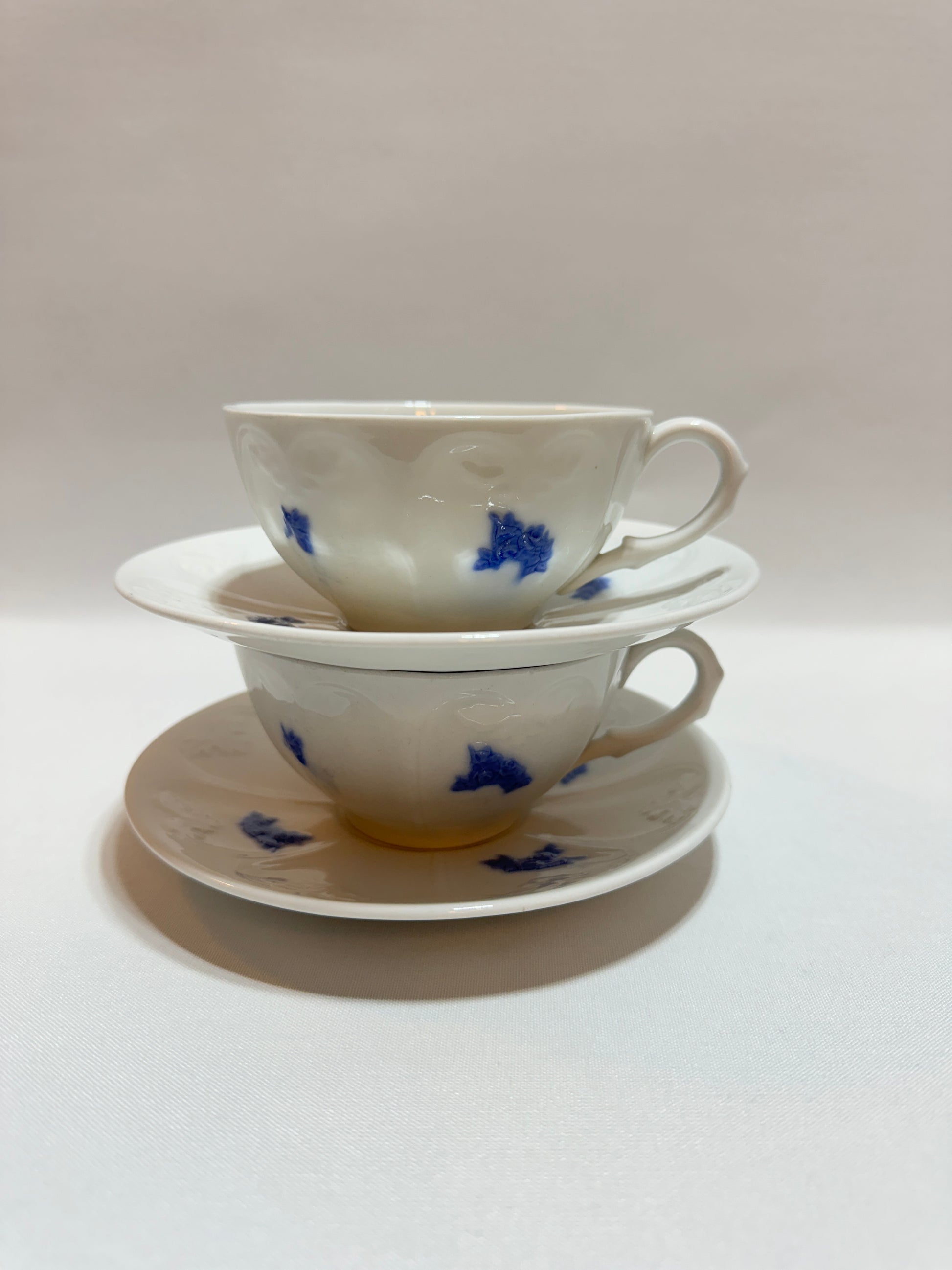 2 st tekoppar med fat. Blå Blom heter serien ifrån Gustavsberg. Mått på kopp: diameter 10,5 cm - höjd 5,5 cm. Gott bruksskick! Se foton.