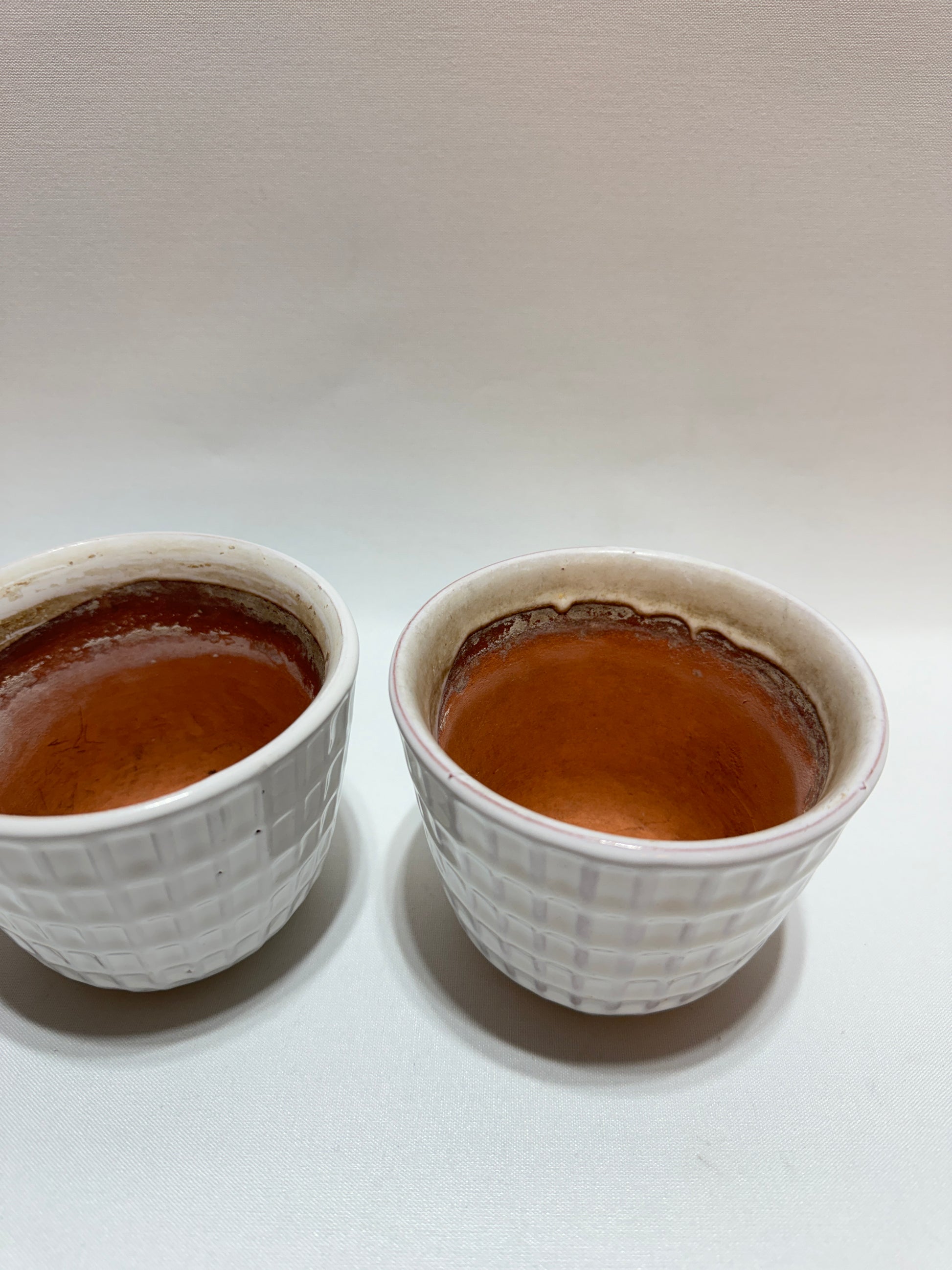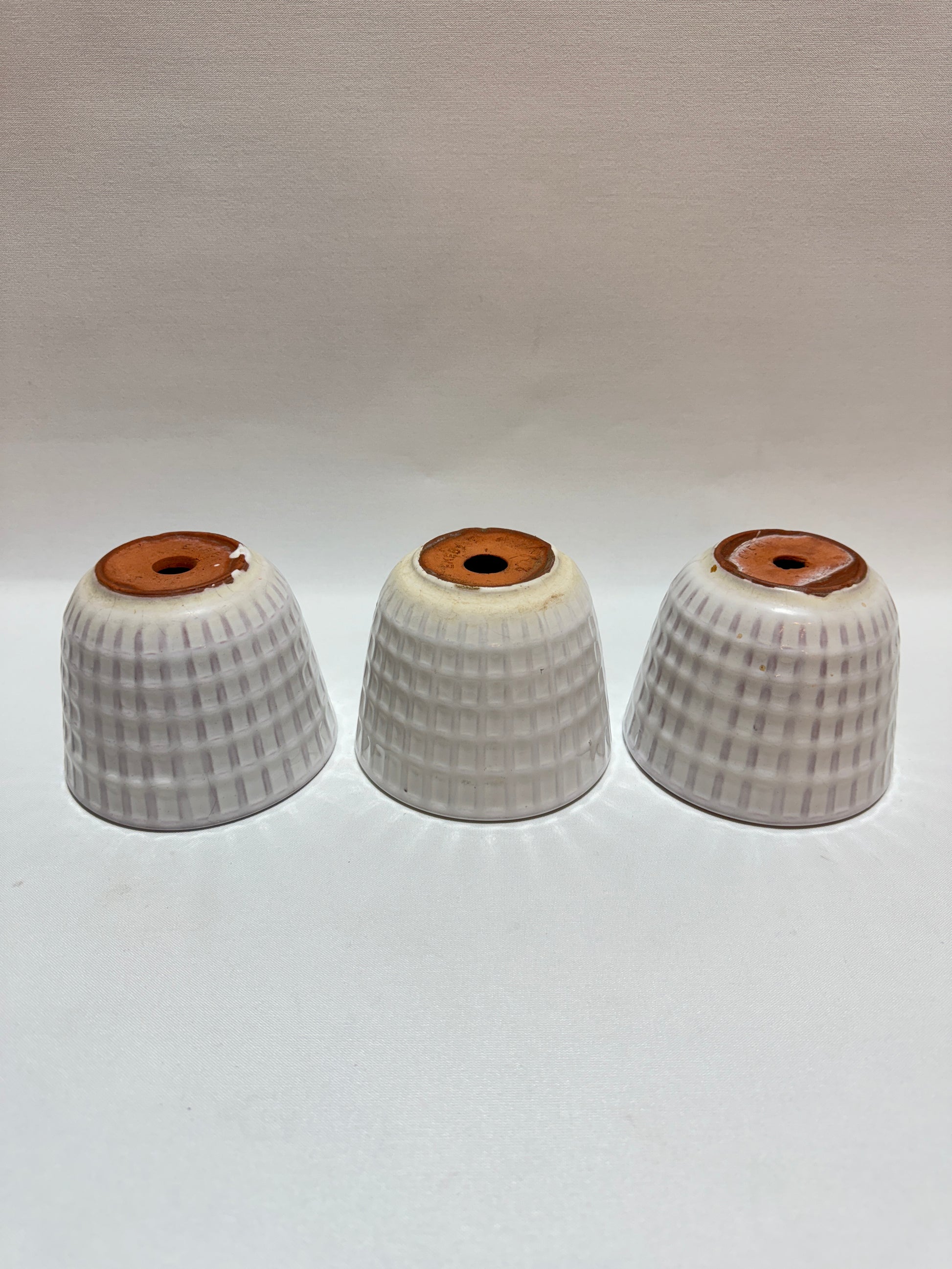 Krukor ”Gunilla” Upsala Ekeby. Mått: höjd ca 9 cm. Diameter ca 11 cm. Kalkrester, små krackeleringar, fläckar. En har mindre spricka. Se foton.