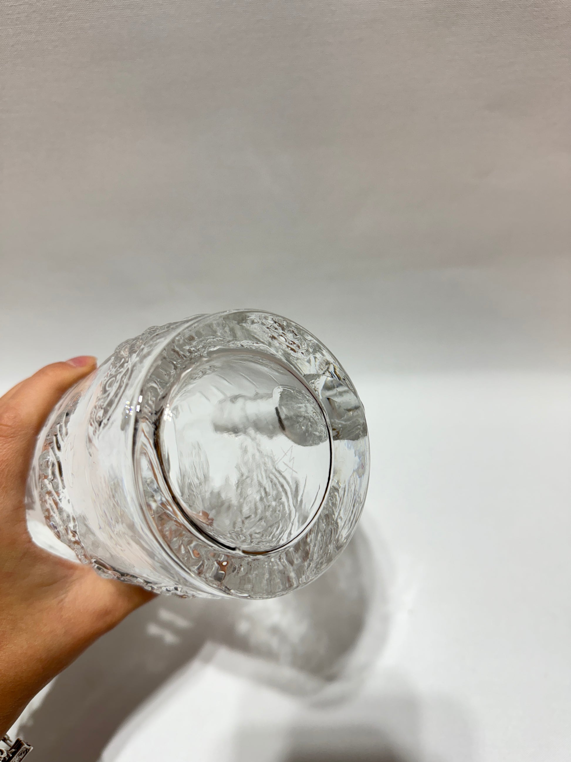 Serien heter Björkstubbe och är formgivna av Eugen Montelin för Reijmyre. Mått: höjd 18 cm. Något micronagg. I övrigt gott bruksskick. Signering undertill.