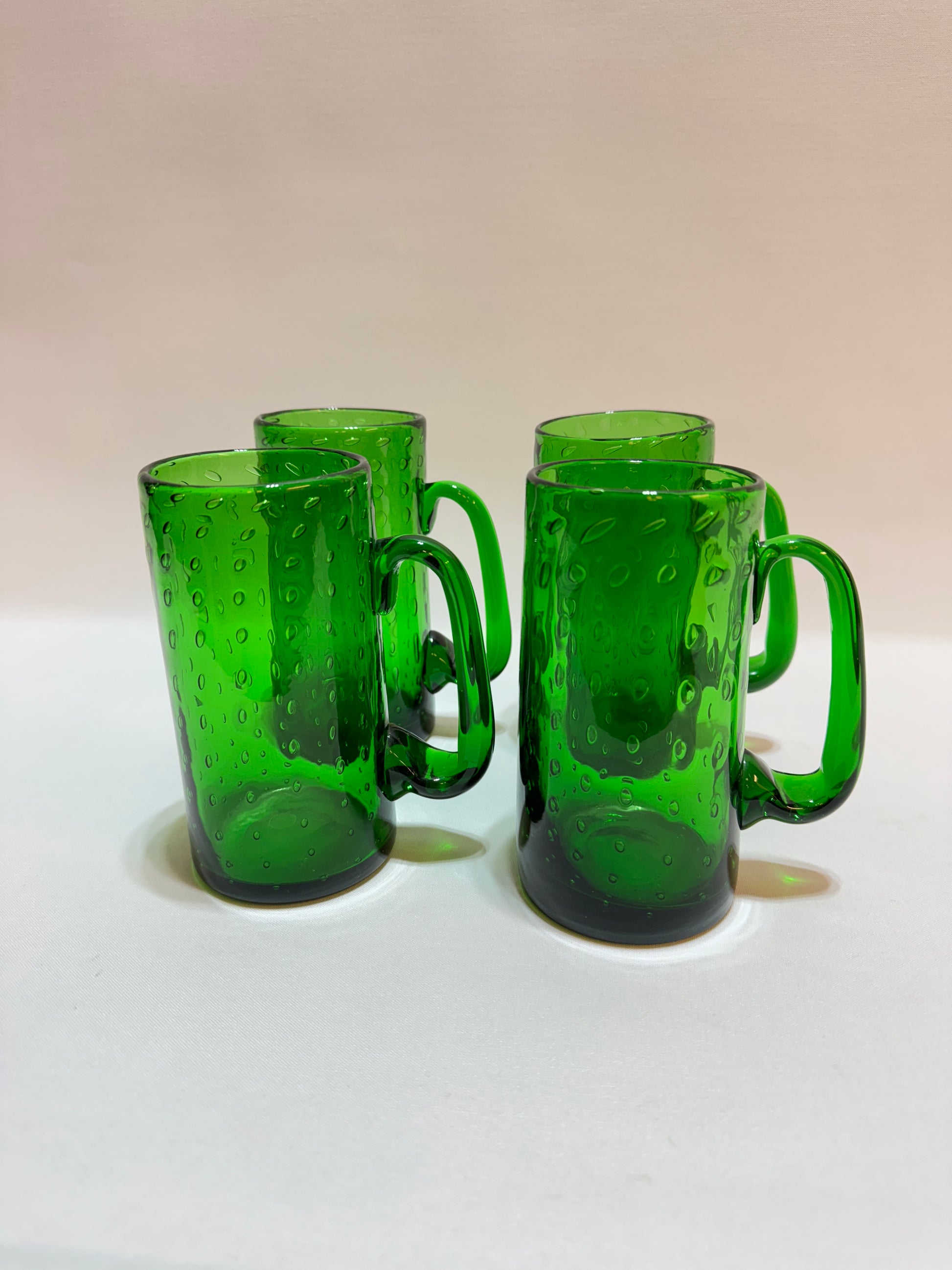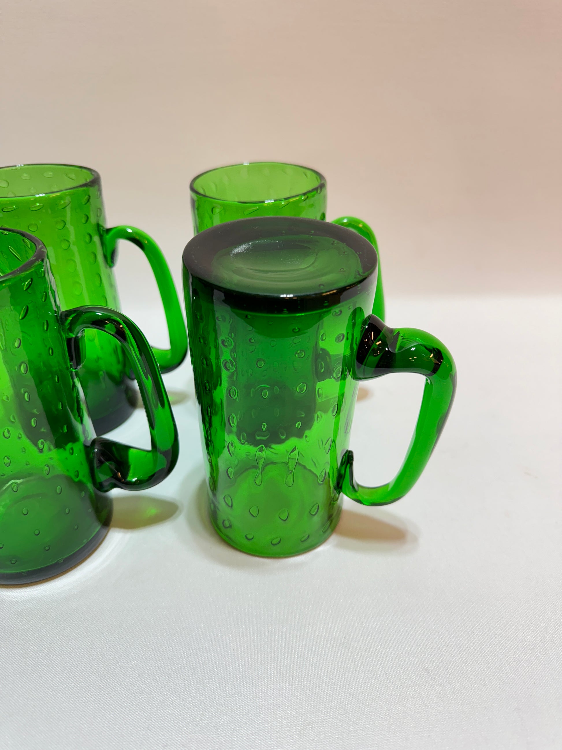 4 stycken munblåsta sejdlar ifrån 1900-talet. Härlig grön färg. Höjd 14,5 cm. I gott bruksskick. Se foton.