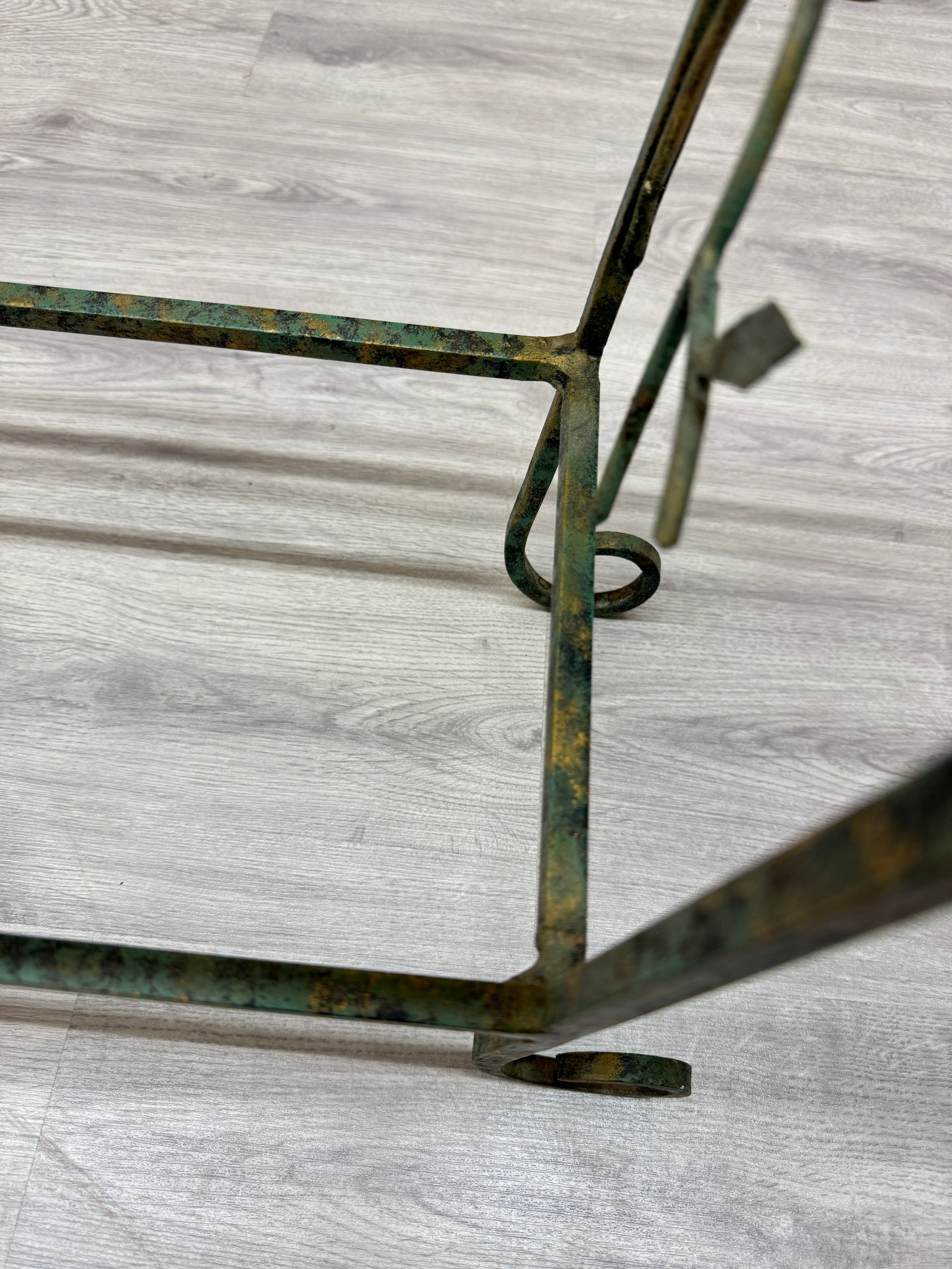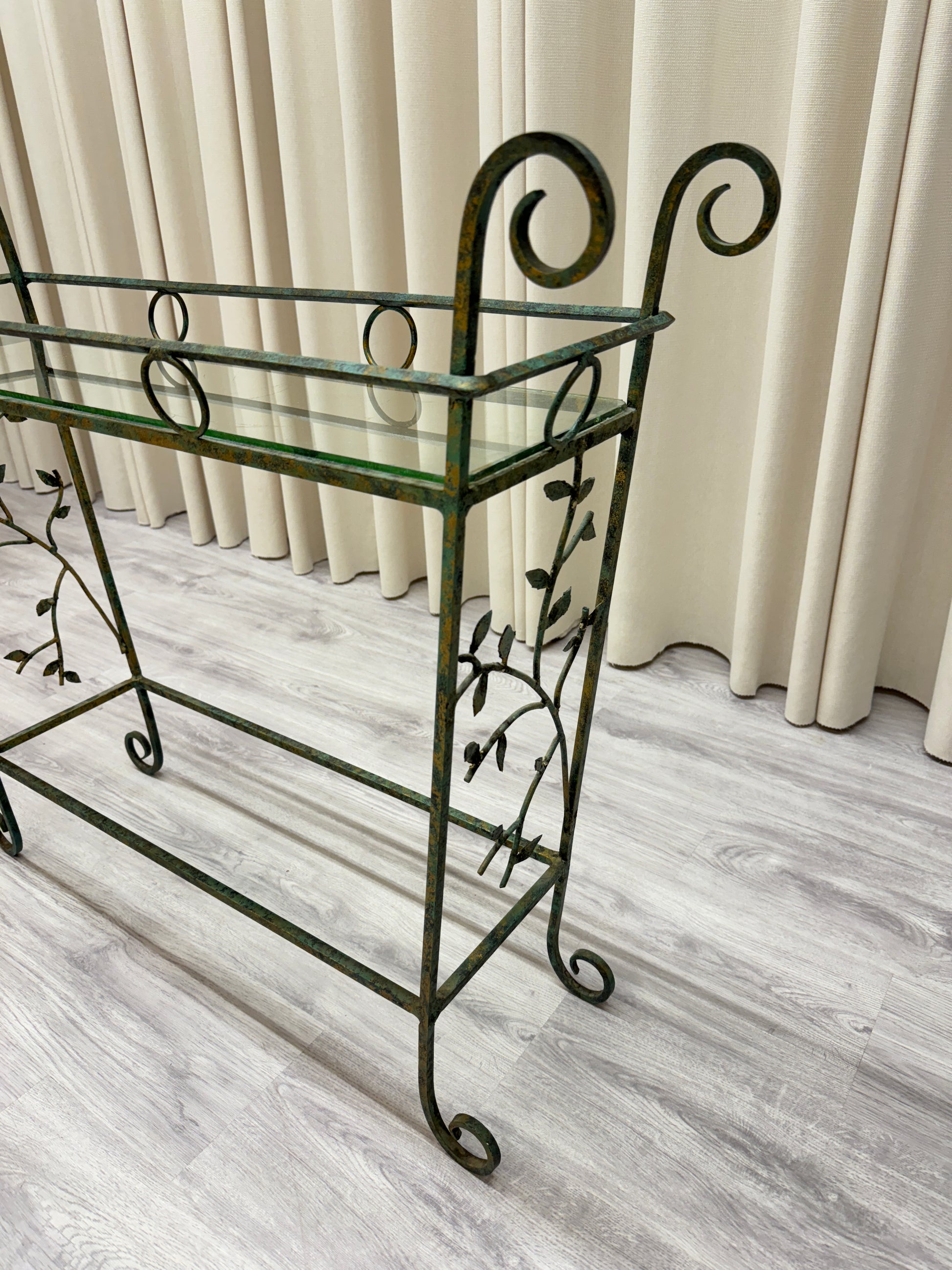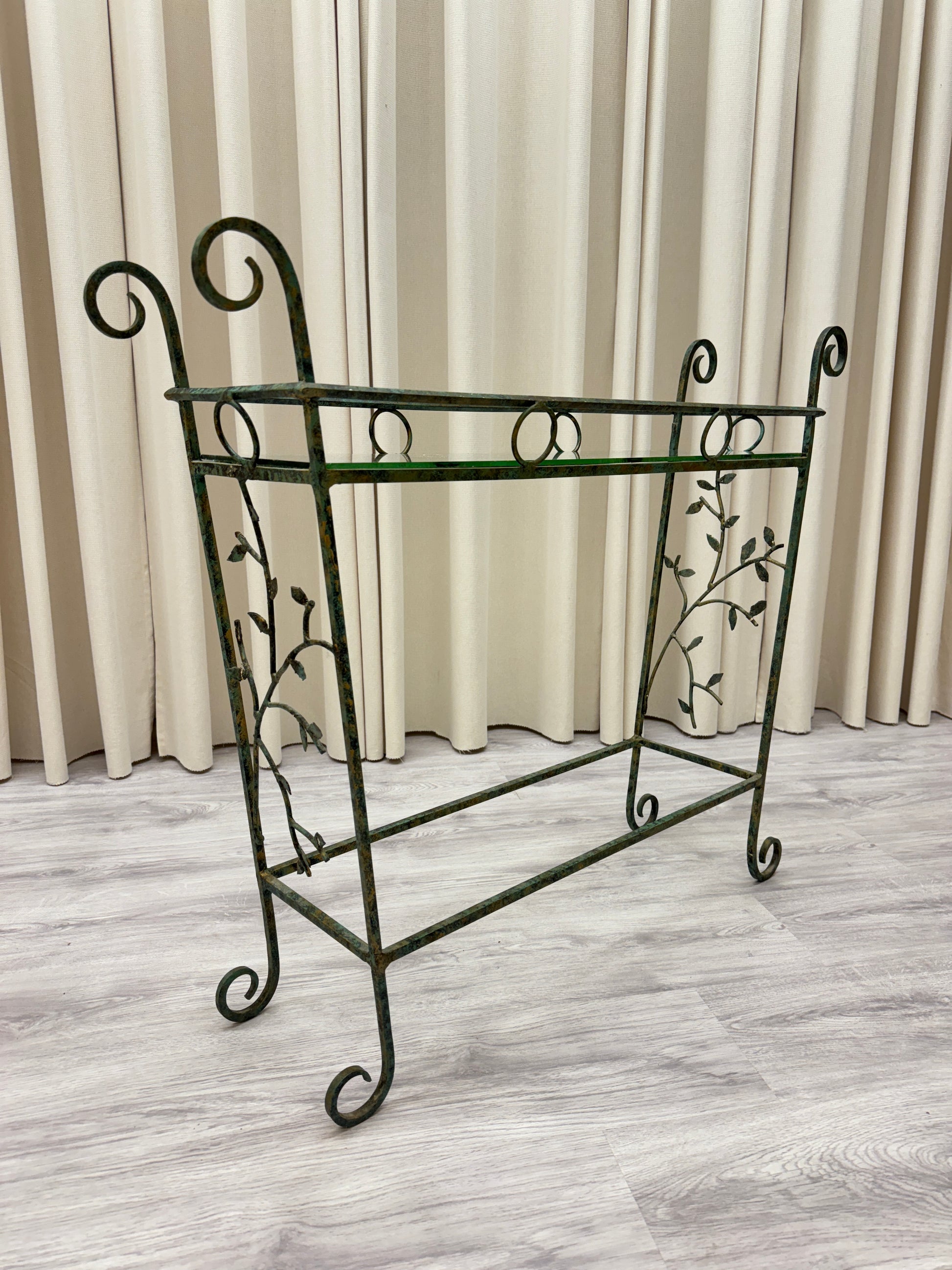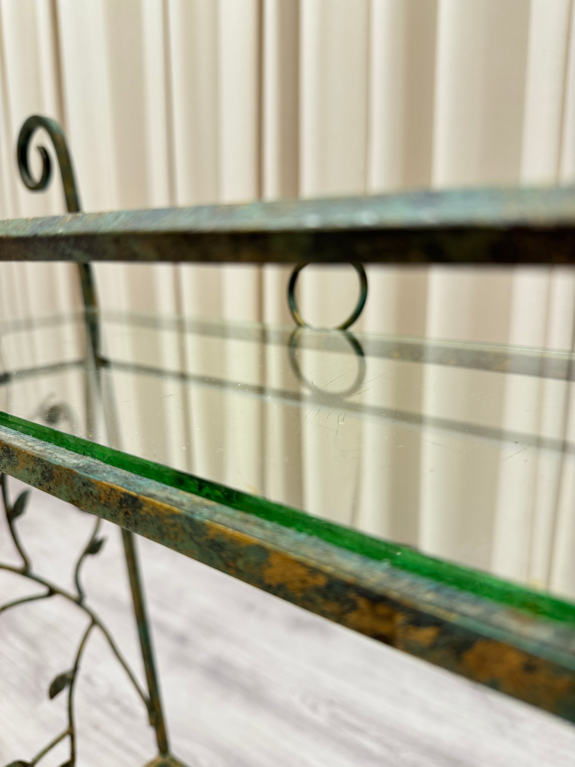 Mått: Längd ca 95 cm - Djup ca 25 cm - Höjd ca 75 cm. Slitage på glasdel. Nagg och repor. Enbart glas på överdel. Går i grön/blåa toner.
