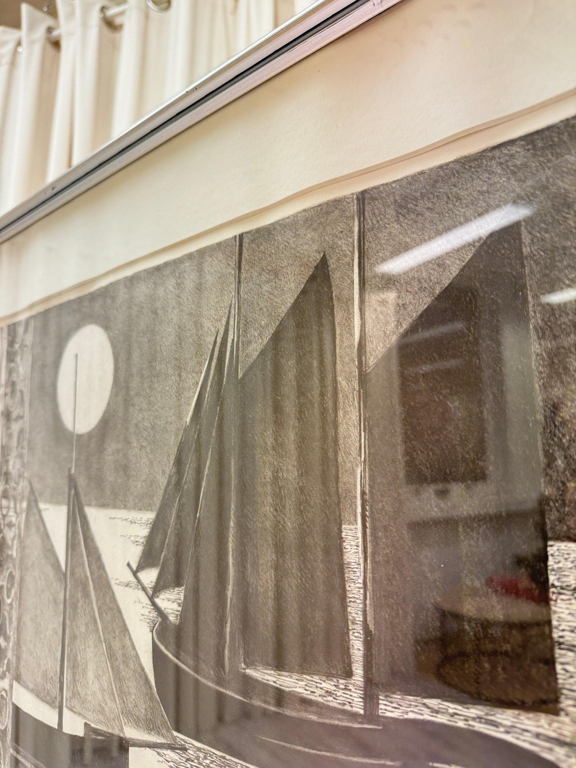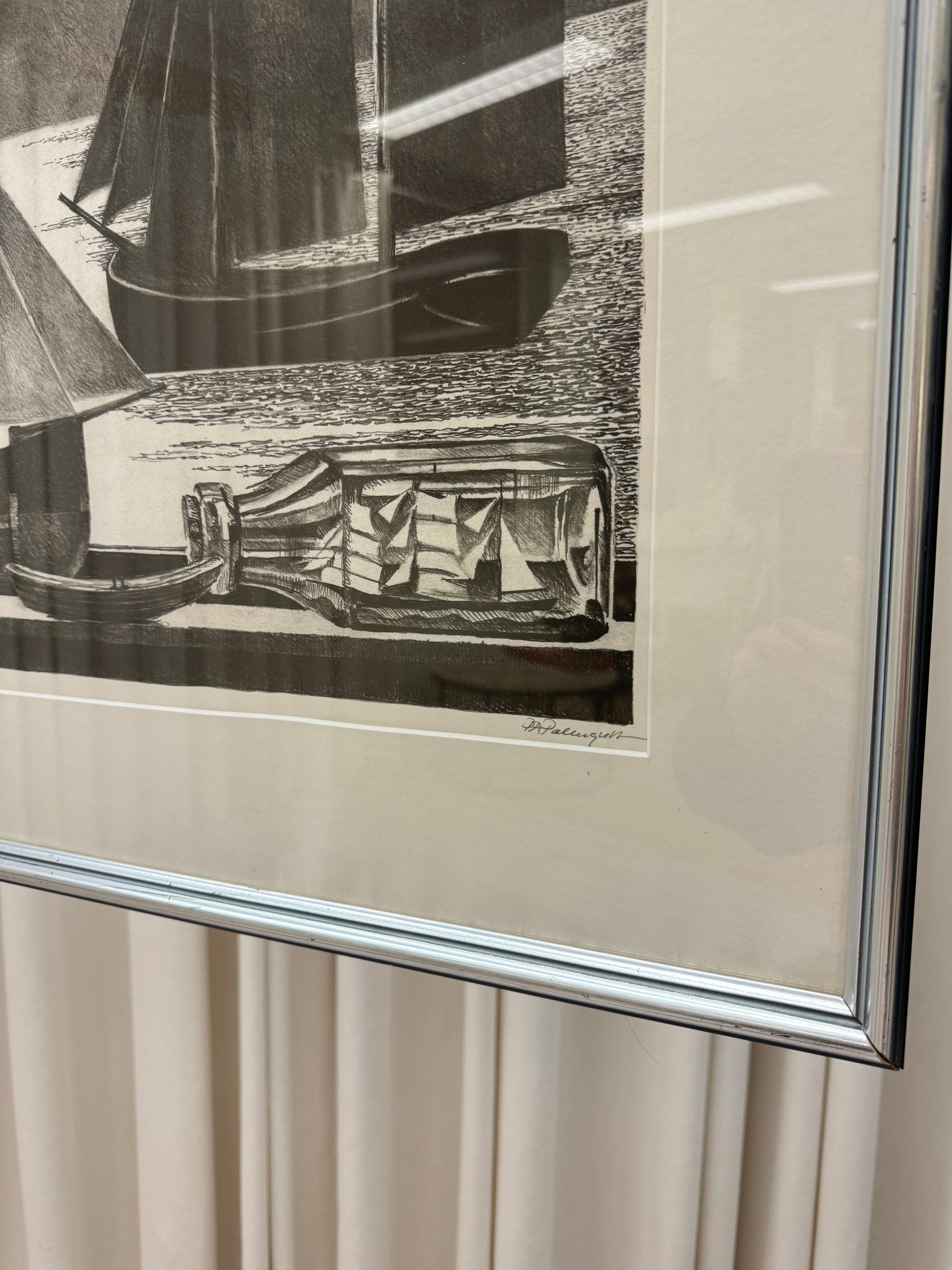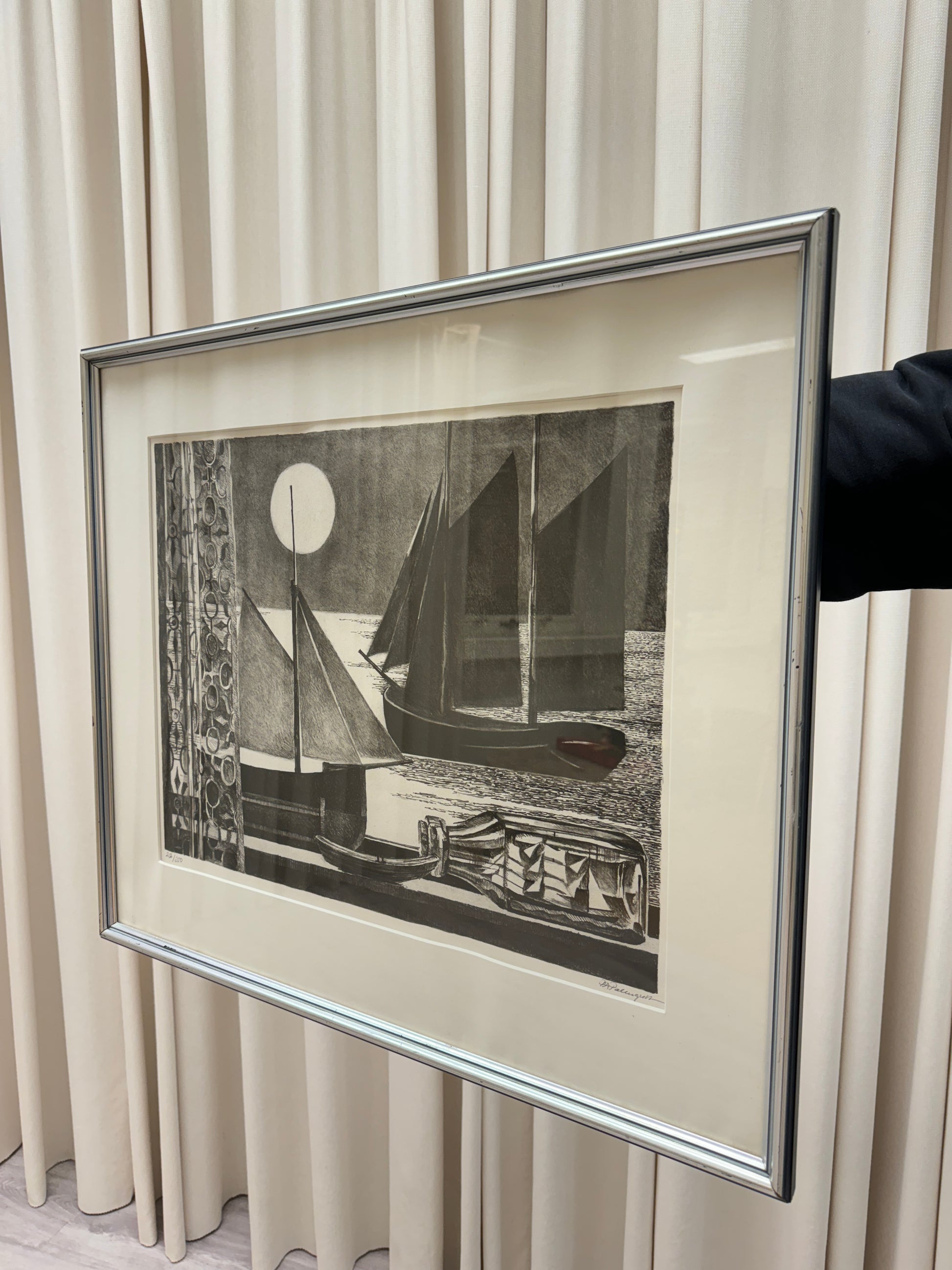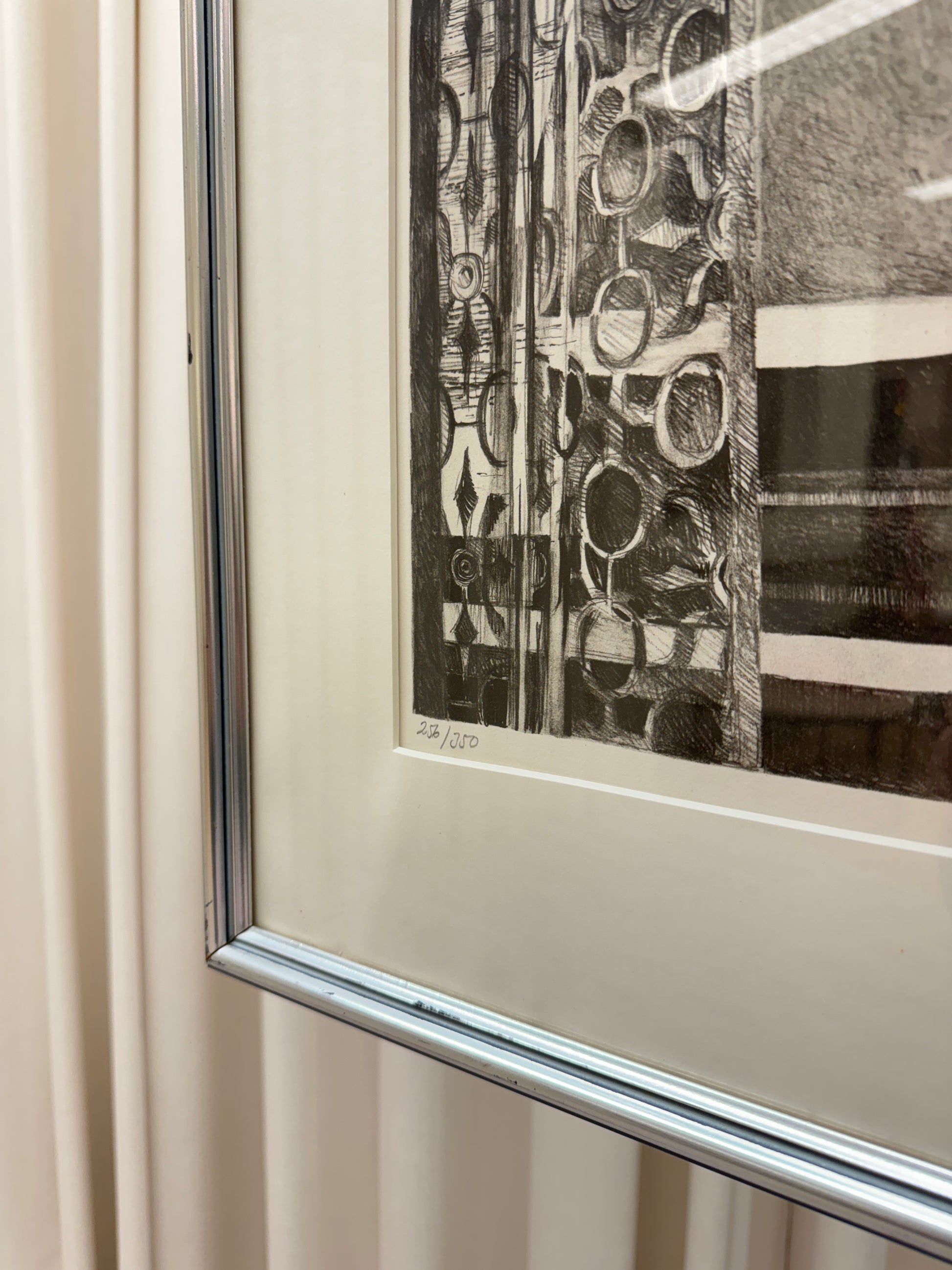Mäter ca 67 x 57 cm. Något vågig invändigt upptill. Några skav medkommer på ram. Signerad och numrerad 256/350.