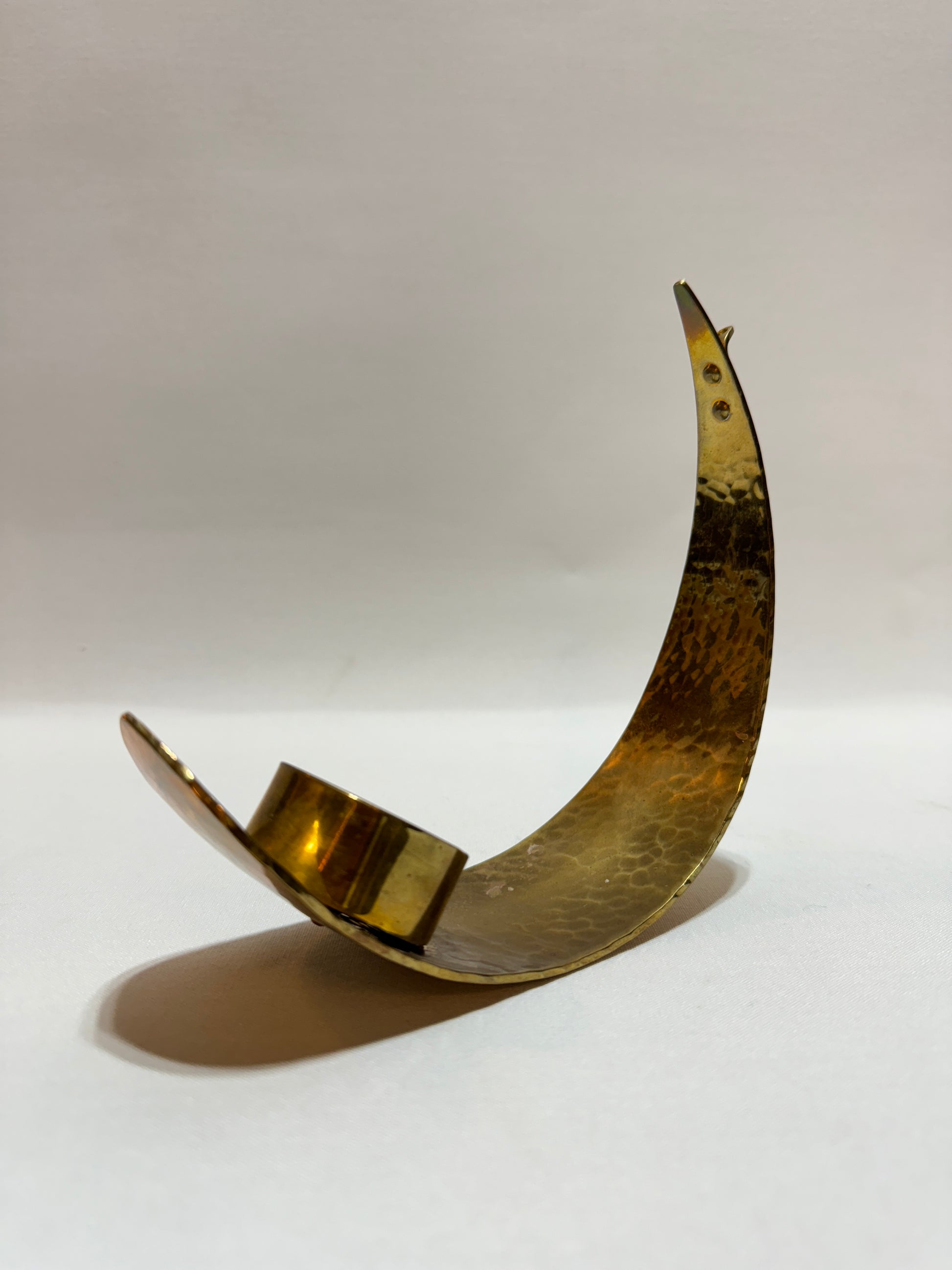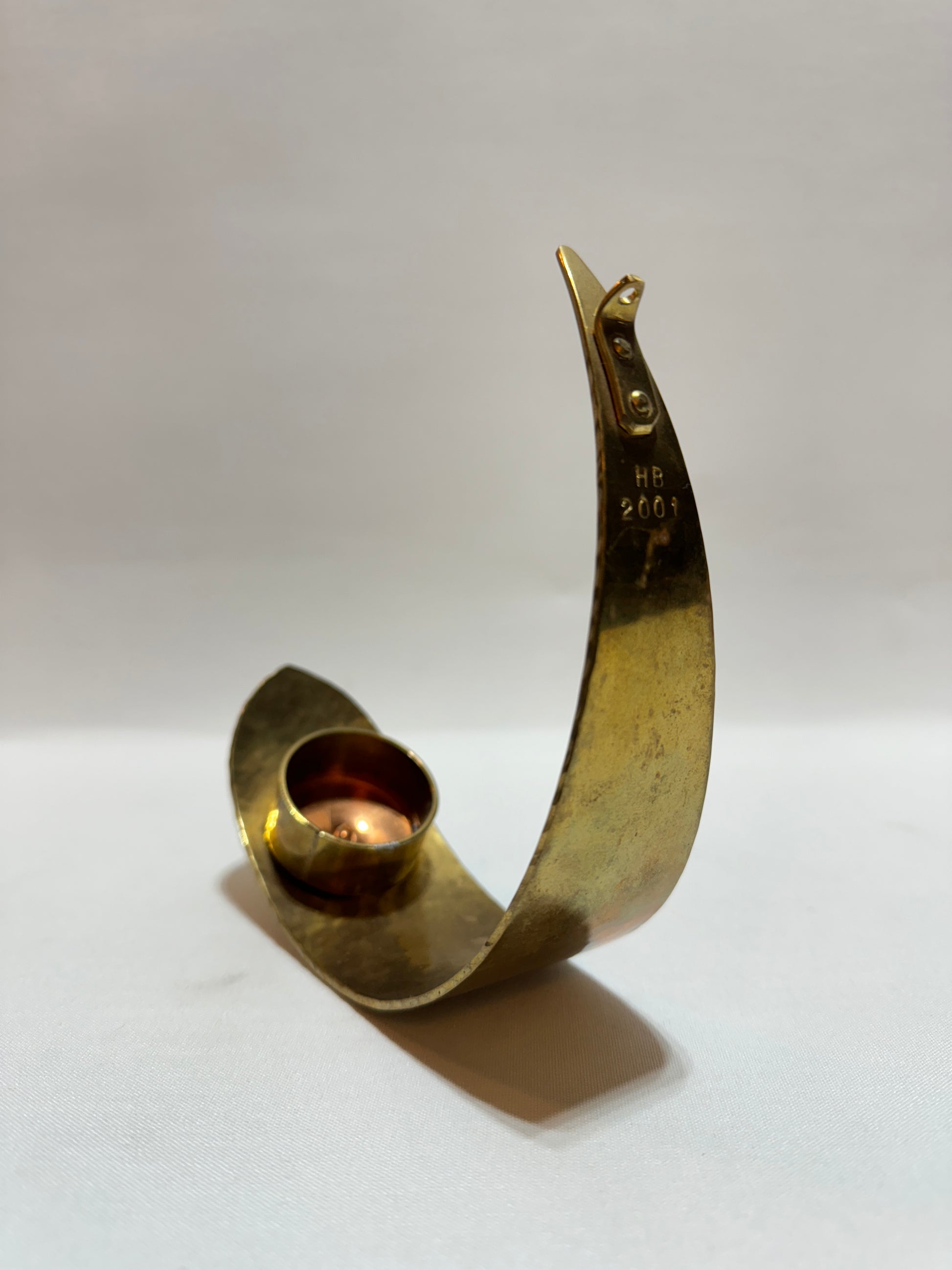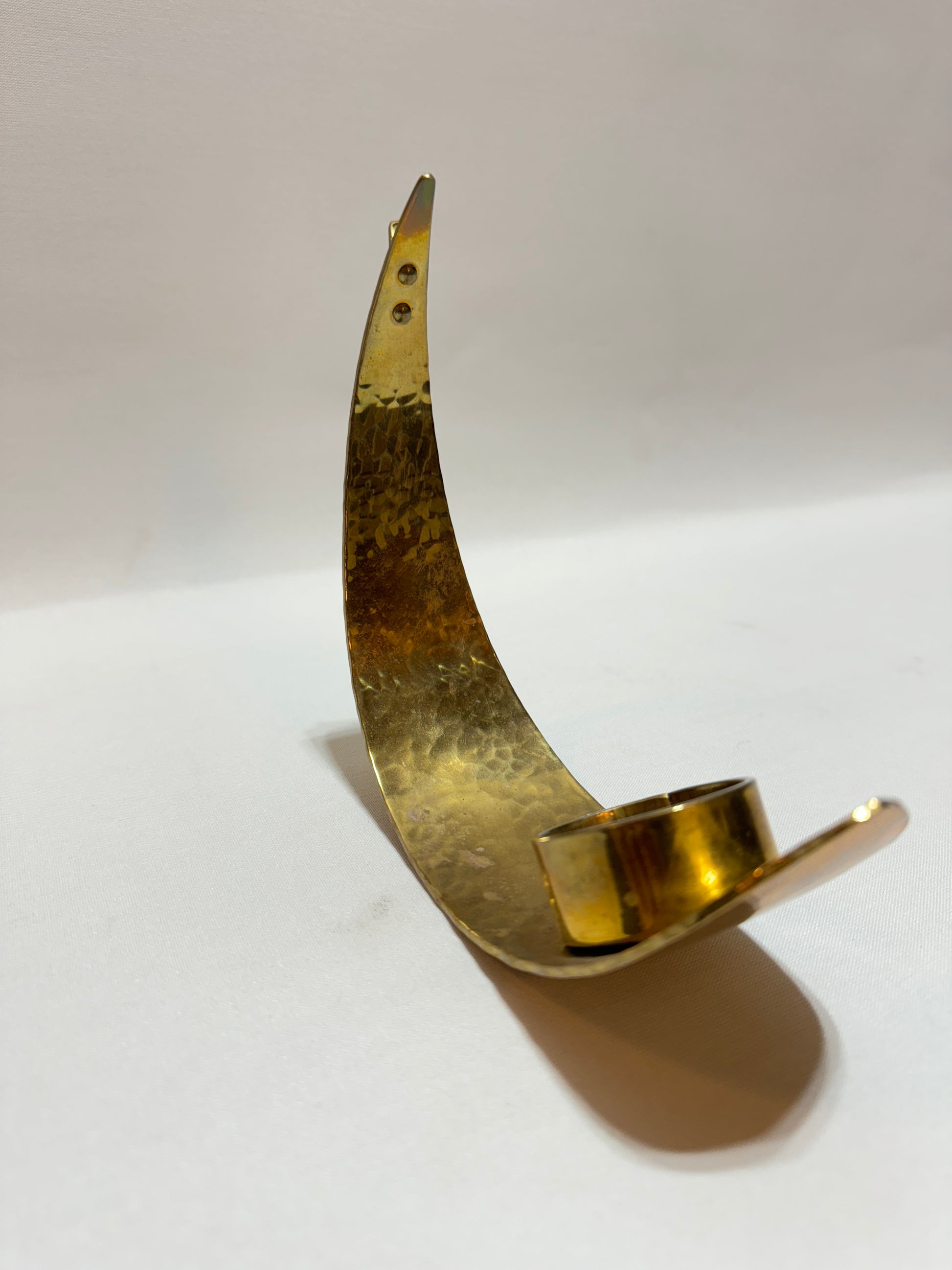 Ljusstake i hamrad mässing. Signerad. Längd ca 17 cm.
