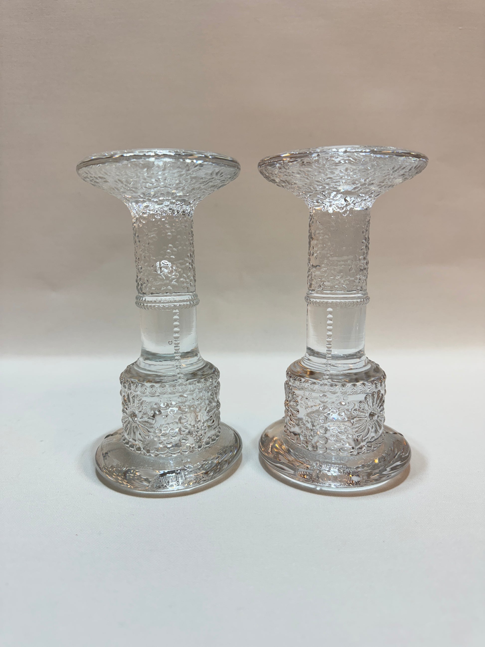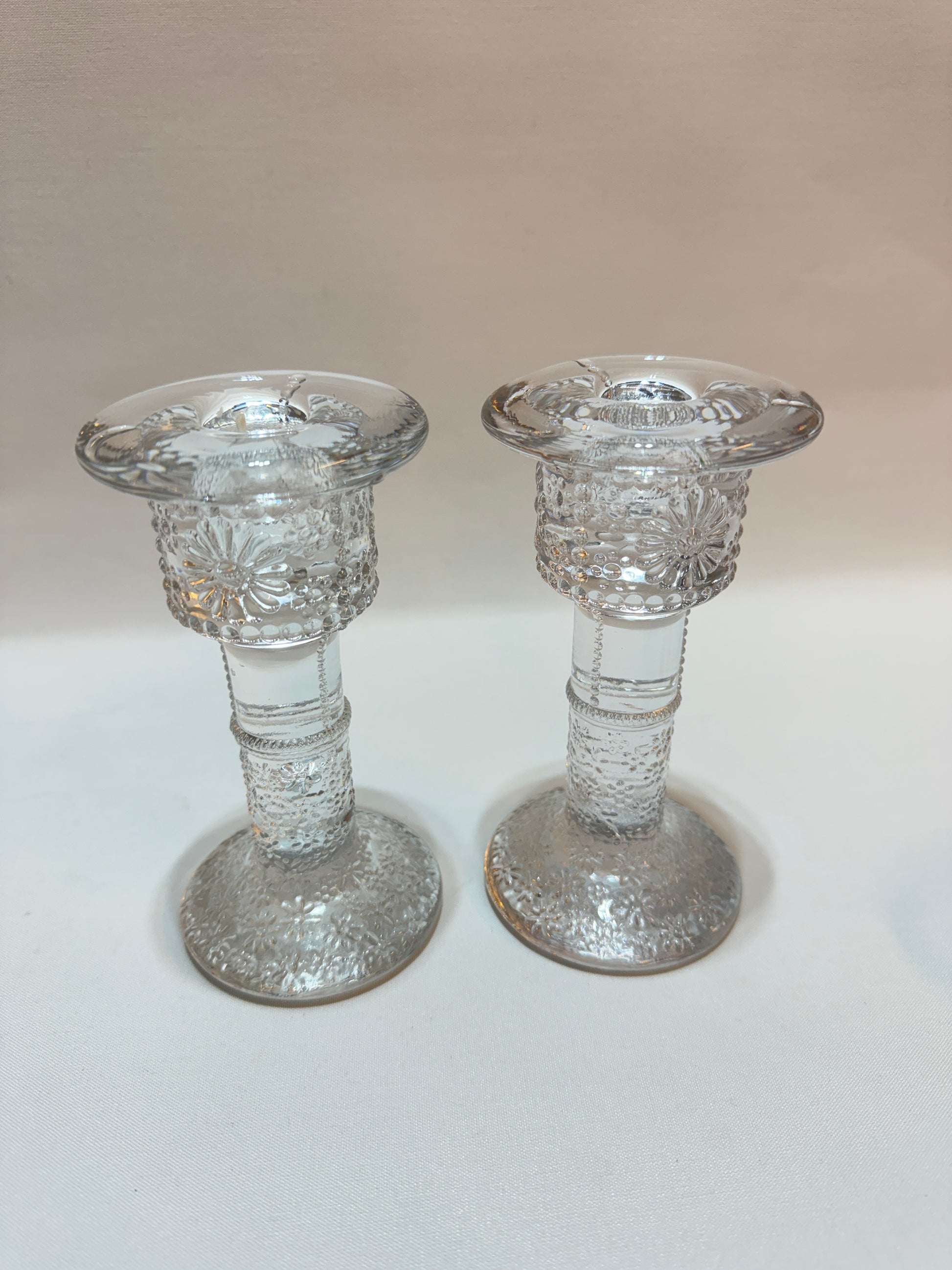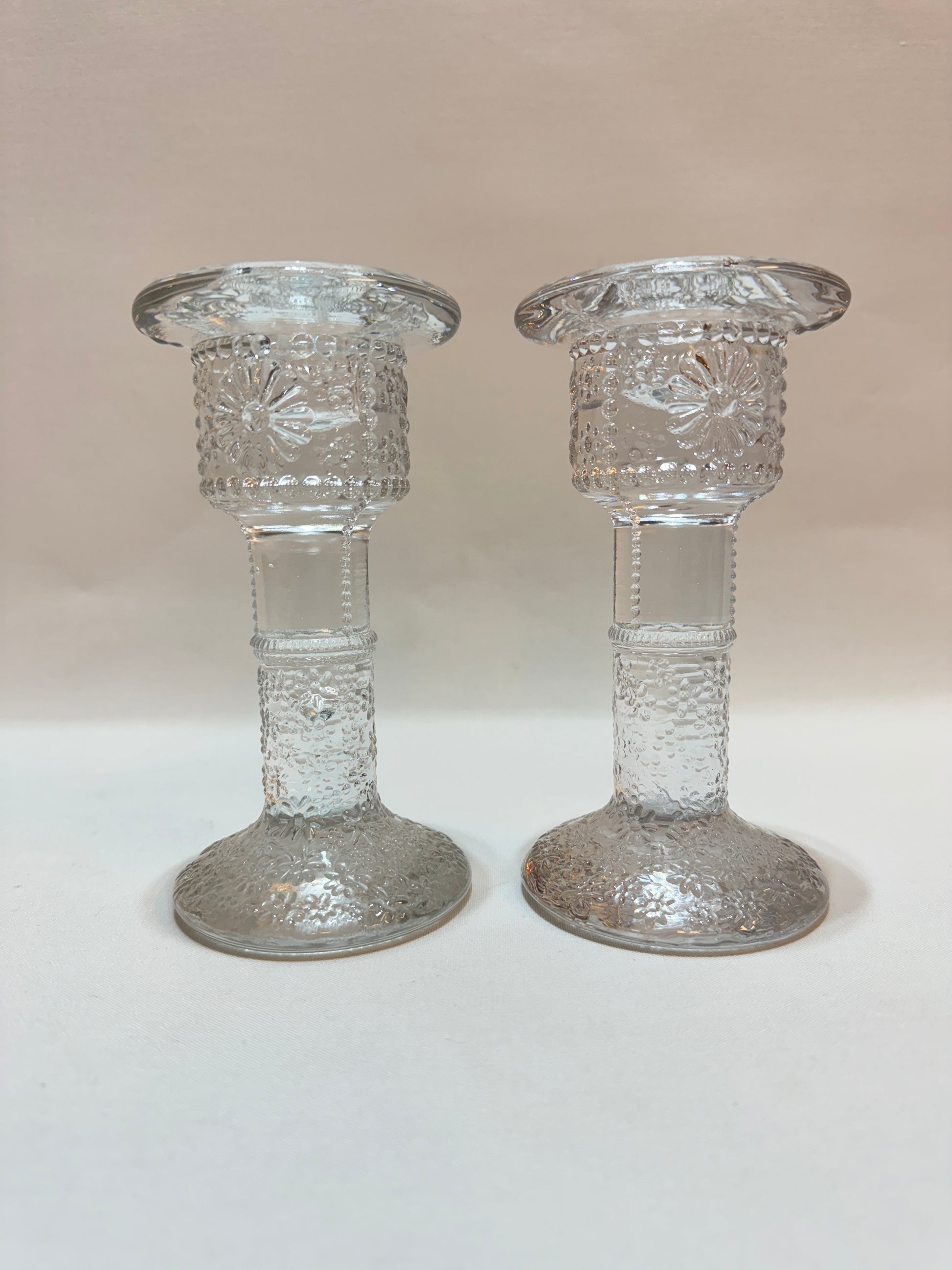 Bakom ljusstakarna står Rolf sinnemark för Kosta Boda. Serien heter Daisy. Höjd ca 15,5 cm. I gott bruksskick.