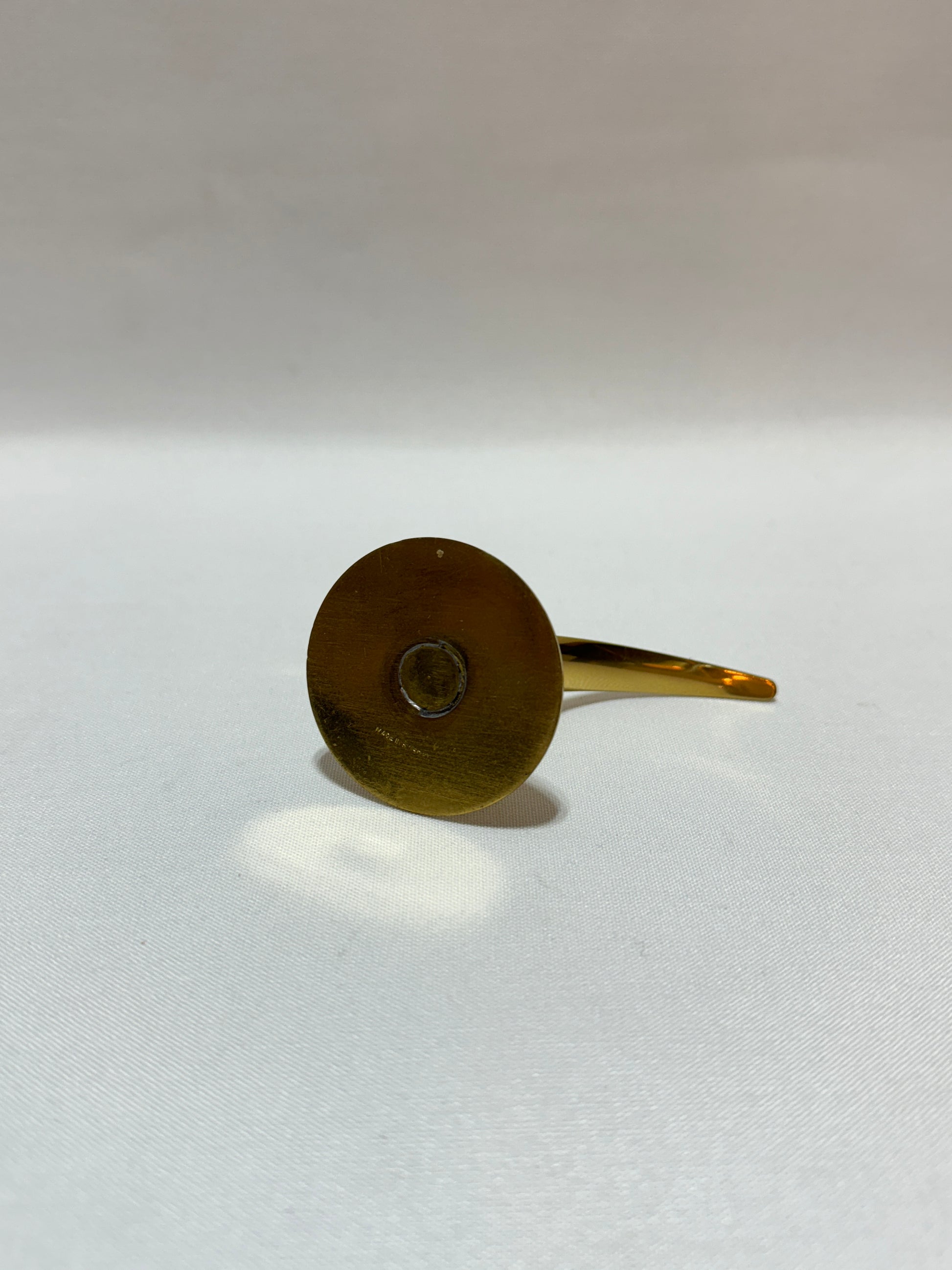 Mässingstake ifrån Ystad Metall - Liljan. Mått: höjd ca 6 cm. Spår av böjnad på ena vingen. Mässing.