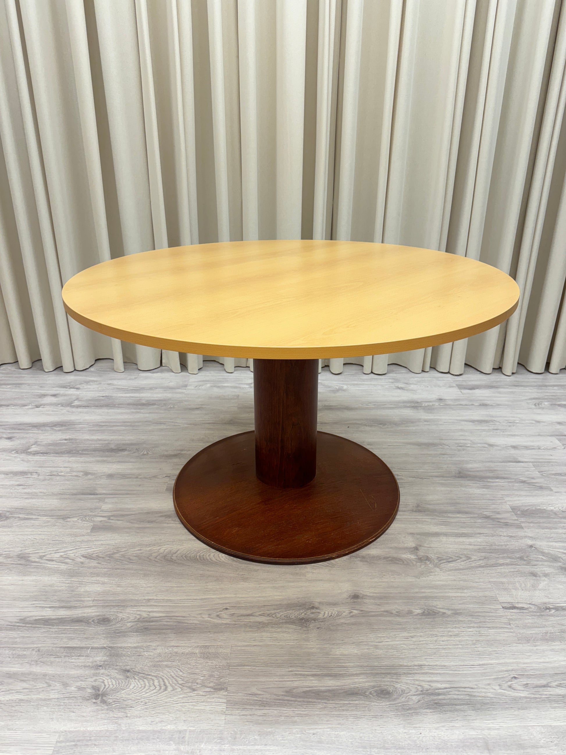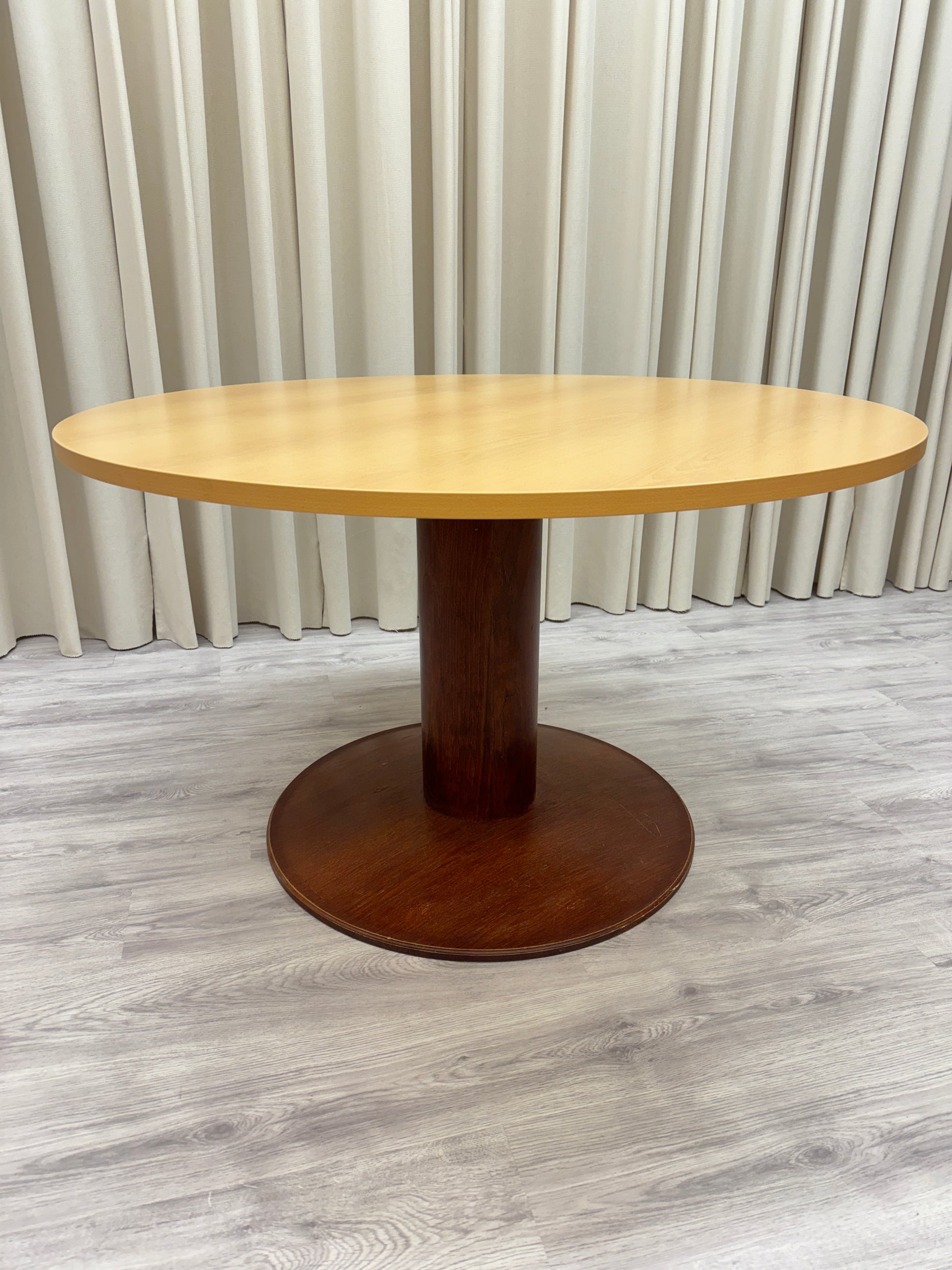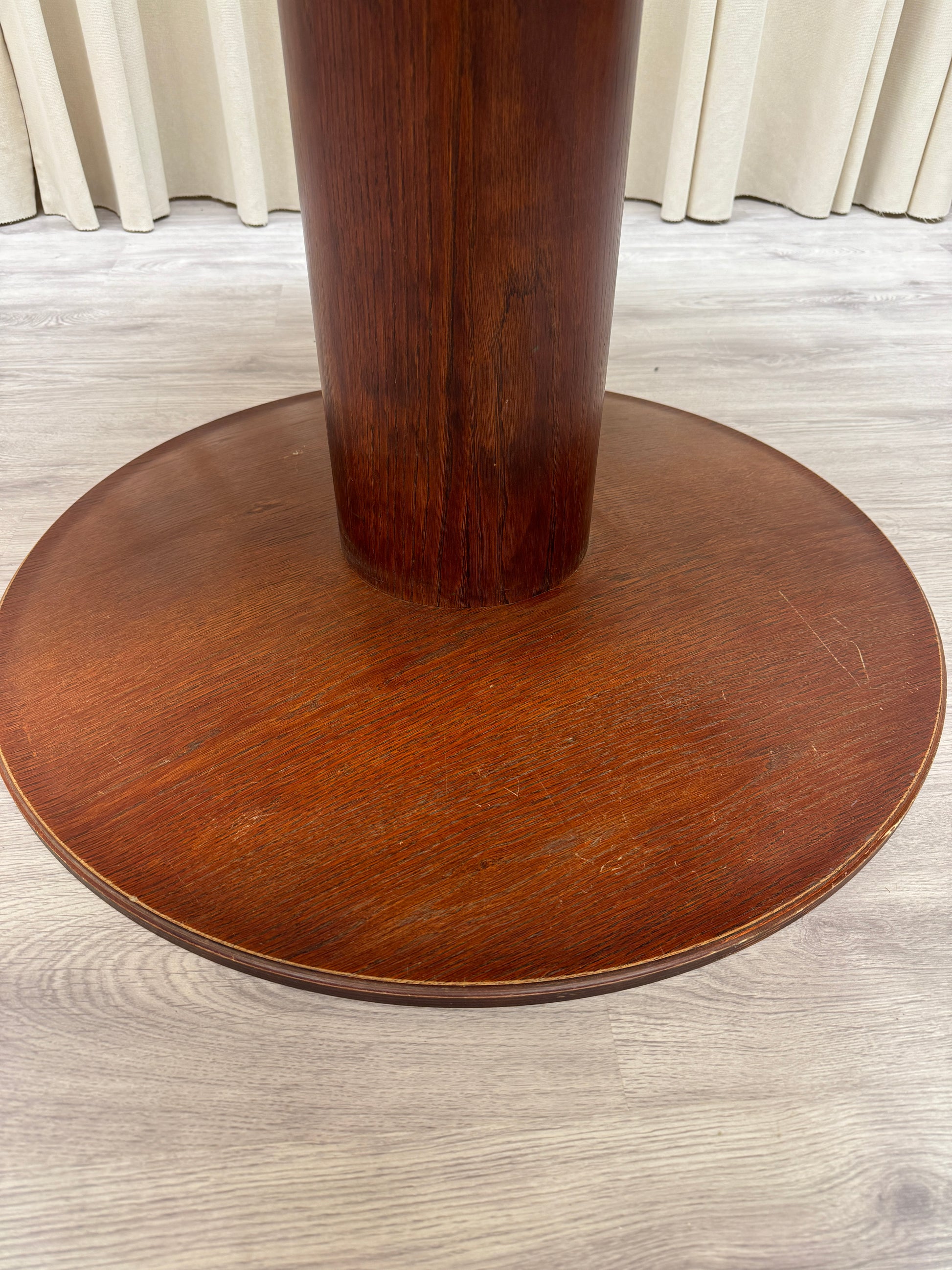 Kan endast hämtas ut i fysisk butik på Södra Kungsgatan 59 i Gävle. Diameter 120 cm - höjd 74 cm. Foten har några repnoteringar. I övrigt gott bruksskick. Finns två i lager.