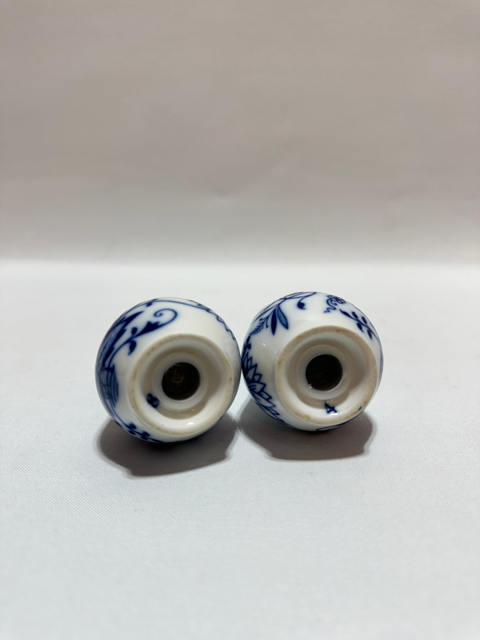 Tyska salt och pepparkar, Meissen. Lökmönstret. Höjd ca 8 cm. Se foton.