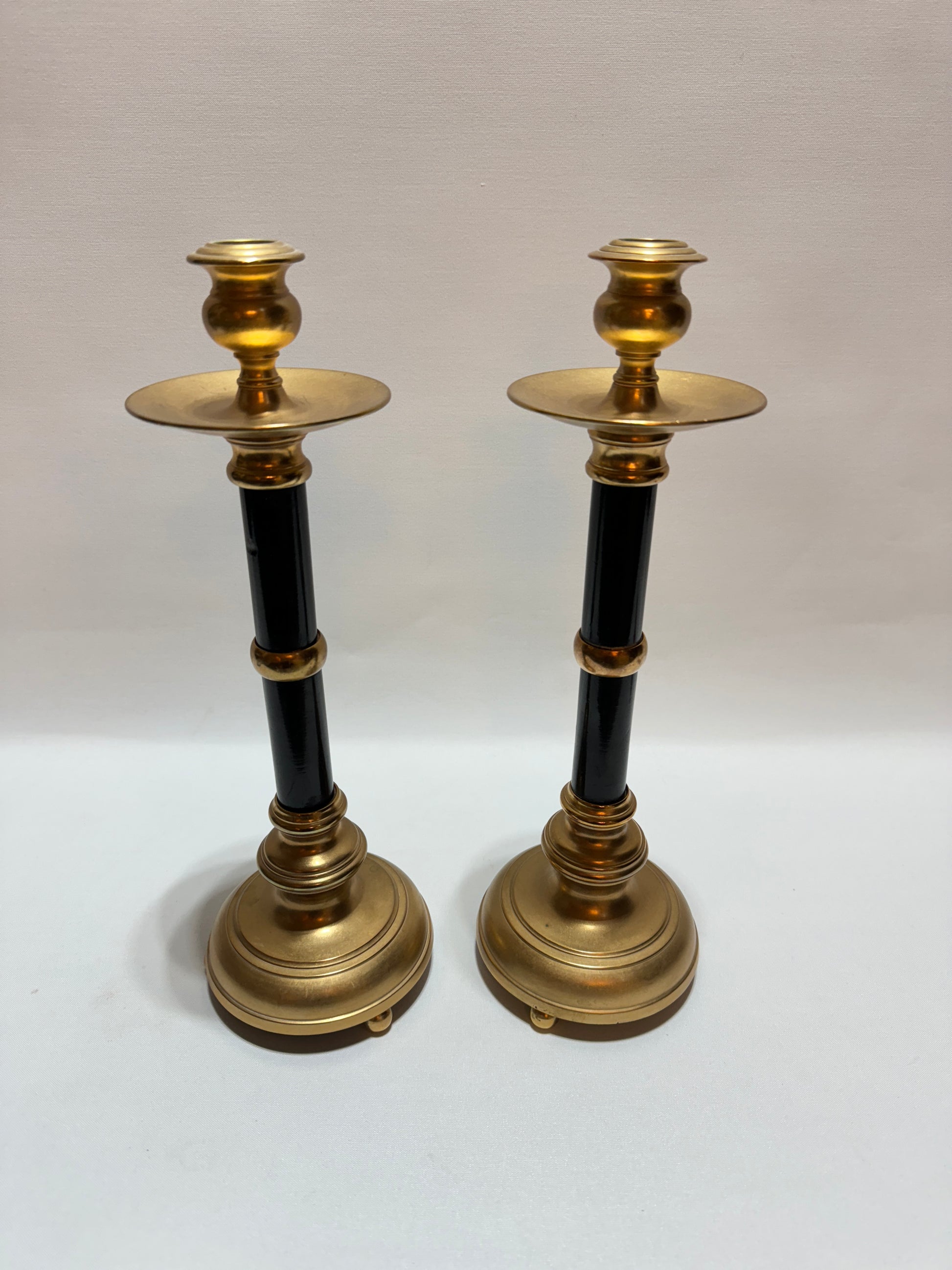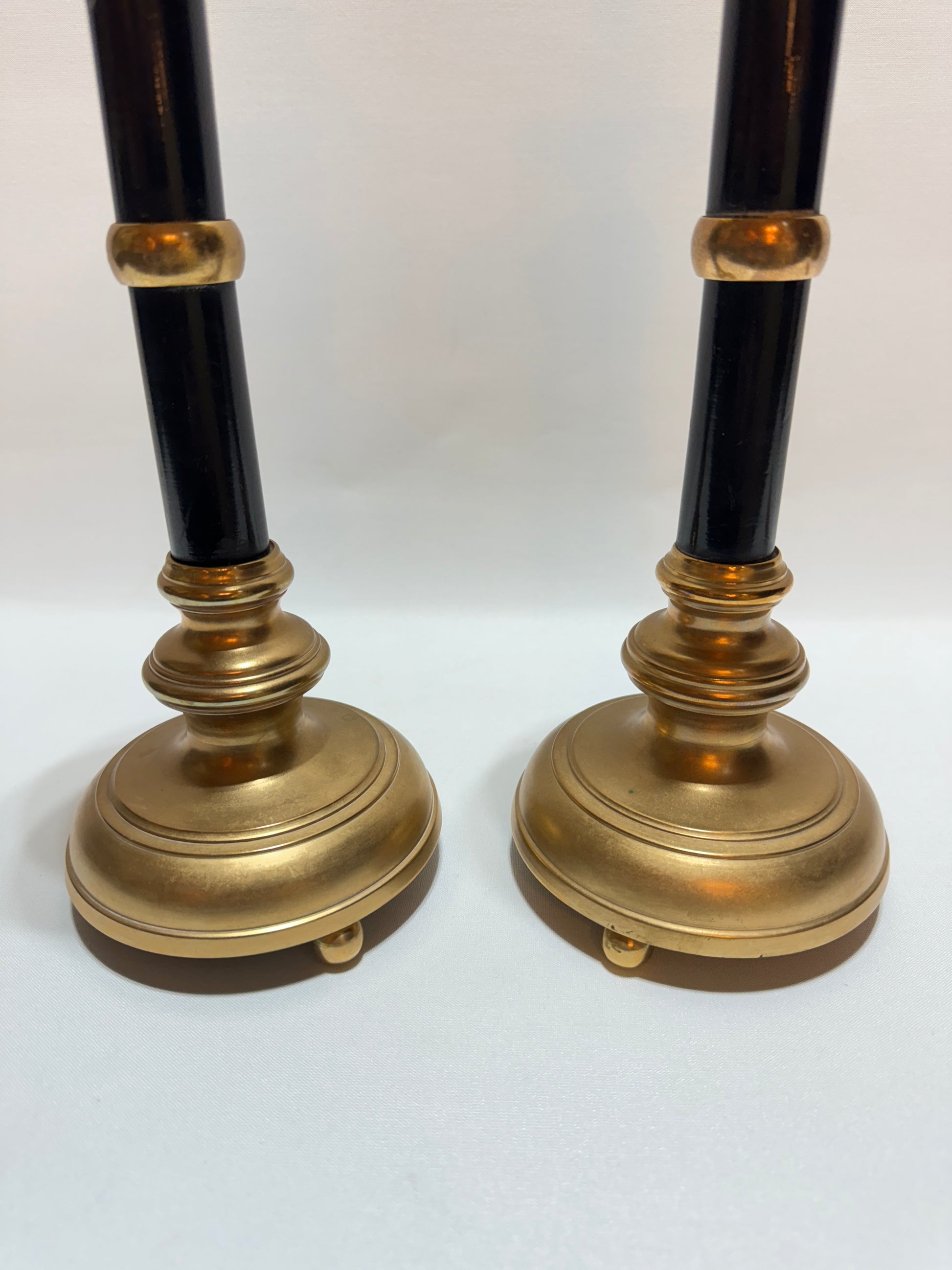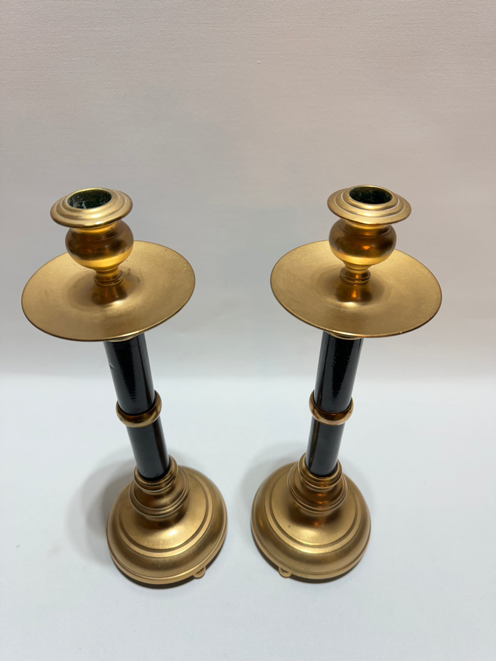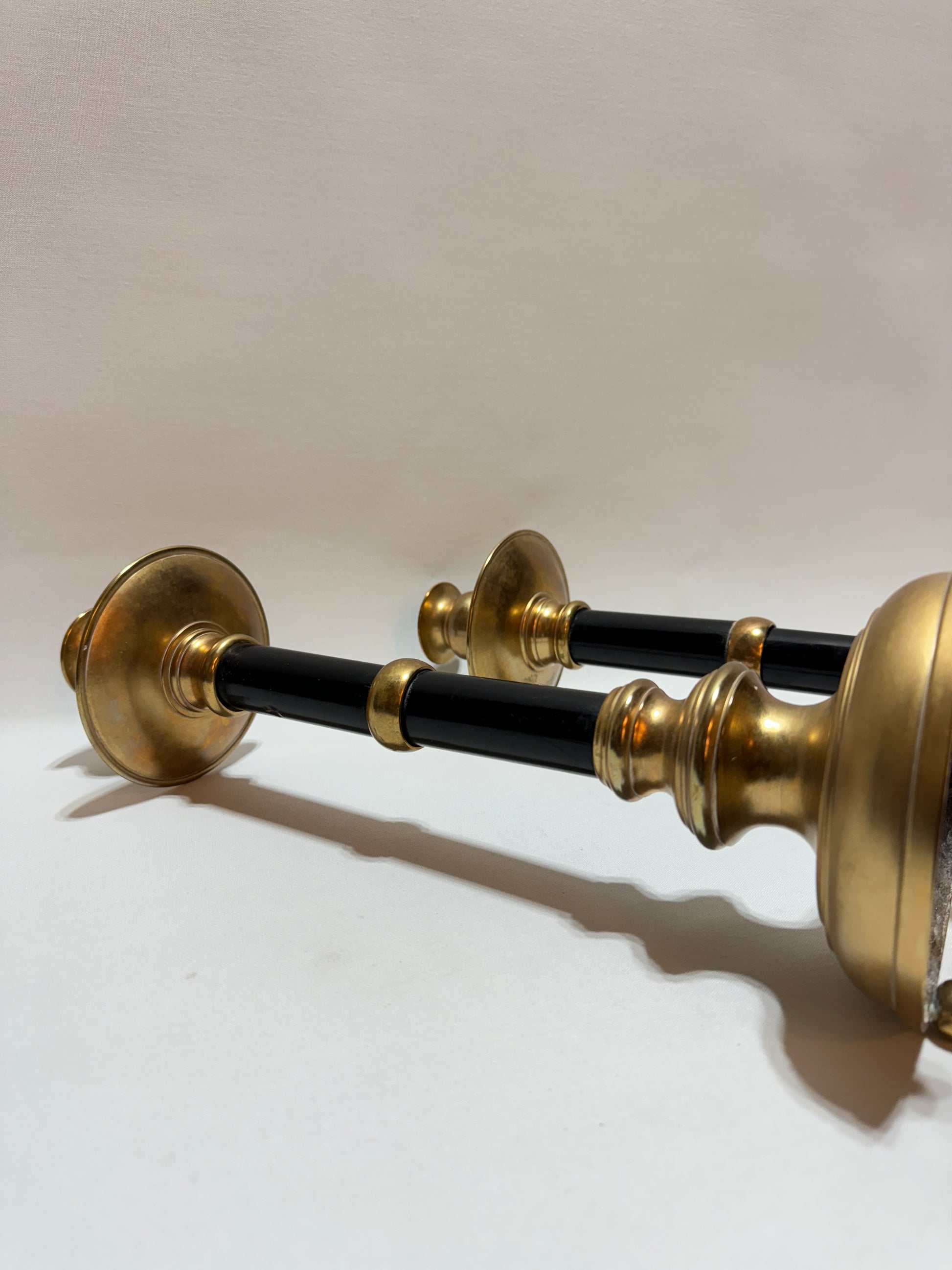 Skultuna, tidigt 1900-tal. Mått: höjd ca 36 cm. Mässing och trädetaljer. Tunga och stabila. I gott bruksskick. Se foton.