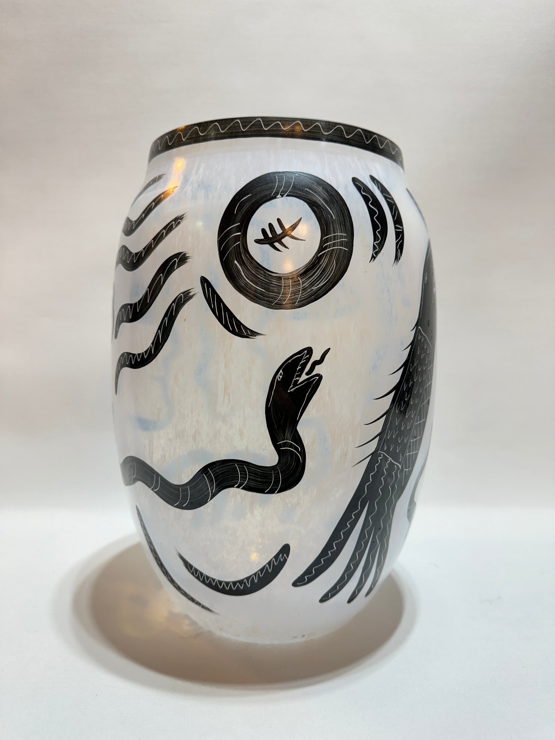 Höjd ca 35 cm. Smånagg vid mynning. I övrigt gott bruksskick. Signerad.
