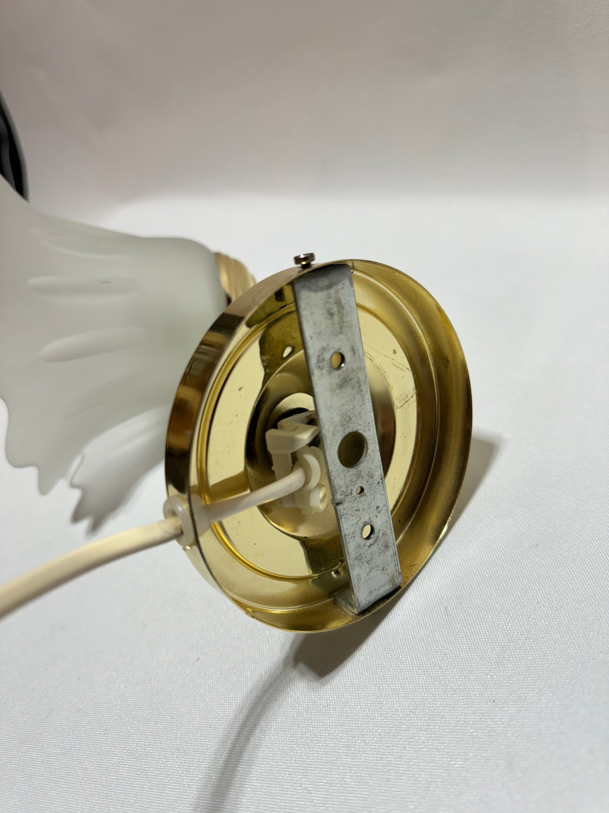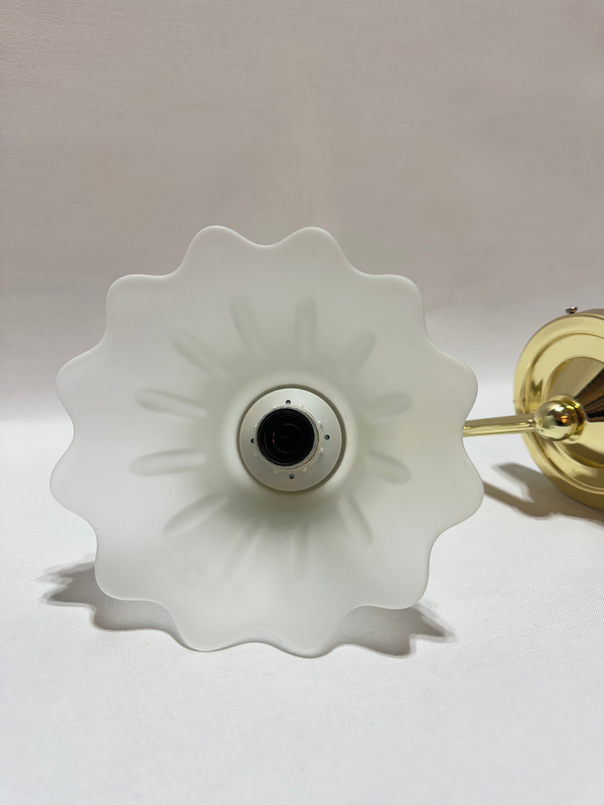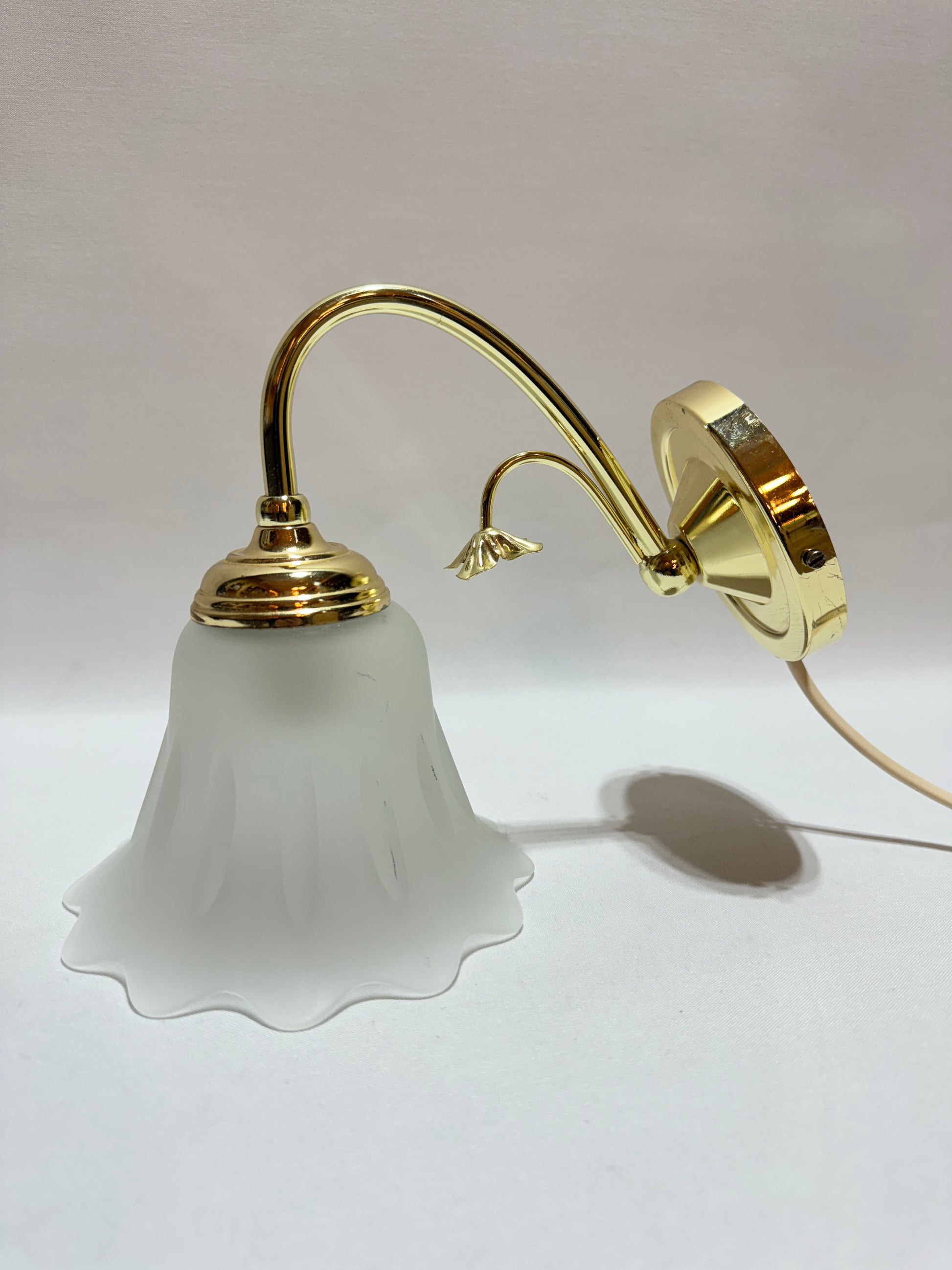Vägglampa, funktionstestad vid inskrivning. Några skråmor på glasskärm. I övrigt gott bruksskick. Se foton. Mått: djup ca 25 cm.